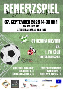 Veranstalter ist der SV Nievern, der sein Vereinsjubiläum begeht. Der Erlös der Veranstaltung ist für das Schulprojekt der Stiftung Kick for Help in Kenia bestimmt.