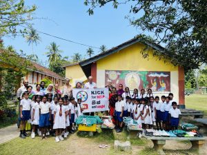 Gemeinsam mit Rubon Sameera, einem befreundeten Geschäftsmann aus Hikkaduwa, überbrachten Blues & So.. gemeinsam mit dem für Kick for Help engagierten Sozialarbeiter Bernhard Henschel Schulmaterialien sowie Fußballschuhe und Trikots für den Sportunterricht.